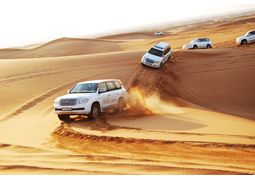 Тази екскурзия е перлата в короната на вълнуващите приключения в Дубай. Неописуемо удоволствие ще ви достави това офроуд преживяване, тази дива езда по червените пясъчни дюни. Срамежливо залязващото слънце ще добави мека светлина и романтика, а пустинният пейзаж ще ви приканва да навлезете все по-дълбоко и по-дълбоко в сърцето на пустинята. Ще спрете сред червените дюни, за да опитате вкуса на арабското кафе и гостоприемството към странника. След залеза на слънцето ще пристигнете в бедуинския лагер, където ще бъде сервирана вечерята под открито небе. Тук ще може да нарисуват ръцете ви с къна, да пушите шиша /наргиле/, да яздите или просто да се снимате с камила - всичко това на фона на арабска музика и бели денс.