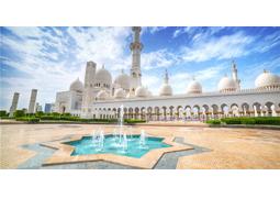 Ще разгледате и импозантния хотел Емирейтс Палас /Emirates Palace/ (фото-стоп отвън), построен в типичен арабски стил с архитектура, напомняща дворец от приказките. Ще имате възможност и да се насладите на великолепието на бялата джамия Шейх Зайед. Ще имате шанс да посетите и да изпитате красивото усещане за широта, простор и бяло спокойствие. Джамията е кръстена на първият президент на Обединените Арабски Емирства шейх Зайед бин Султан Ал Нахаян, чиято гробница също се намира там. Дизайнът на джамията е вдъхновен от мавританската и монголската храмова архитектура и по-специално от джамията Хасан II в Казабланка и Бадшахи в Лахор, повлияла пряко в разпределението и разположението на купола. Нейните извити арки символизират мавританската архитектура, а минаретата са класически арабски. Интериора и екстериора на Голямата джамия най-добре се описват като смесица от арабски, мавритански и монголски стил.